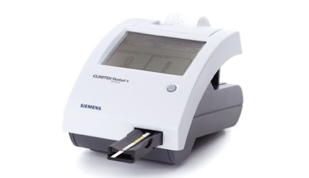 クリニテック ステータス プラスという小型の尿分析器を導入しています。尿中のたんぱくや糖、潜血などを自動で測定することで、腎臓病や糖尿病などの早期発見に役立ちます。日常の健康チェックから疾患の早期診断まで幅広く対応できます。