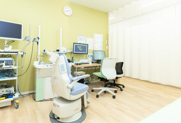 耳鼻科ファイバーを備えた診察室です。 診察室2ではすべての診療科の診察が可能です。