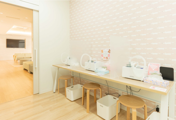 感染対策のため、おもちゃは清潔が維持できる分だけ置か せていただいています。発熱や咳、感染症の疑いのあるお子様は使用をご遠慮願います。また、院内は無料Wi-Fiも完備しております。