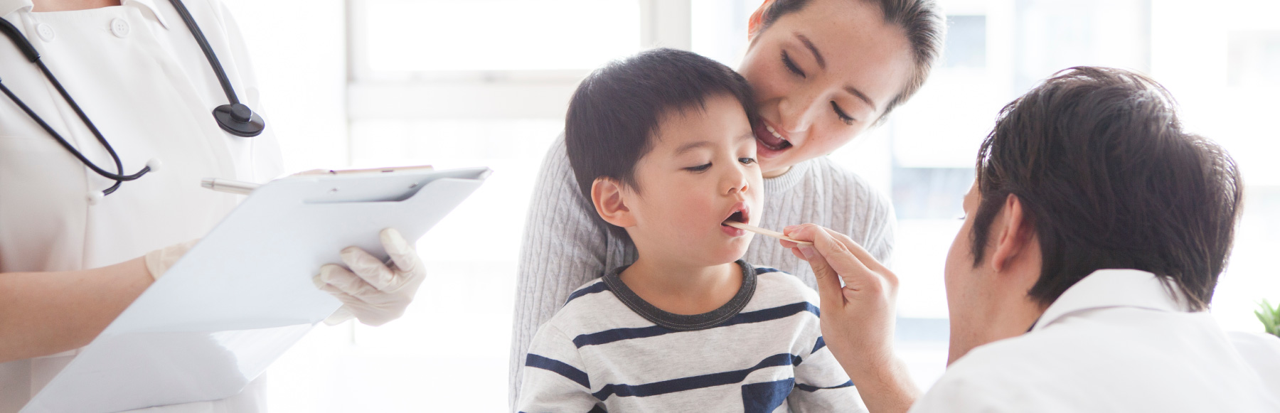 発熱・咳・鼻水といった風邪症状から、腹痛・下痢などの胃腸症状、発疹やアレルギー疾患まで、お子様の幅広い症状に対応いたします。急性疾患はもちろん、喘息などの慢性疾患や、おたふくかぜ・手足口病などの感染症も診療いたします。お子様は症状をうまく伝えられないことも多く、ご家族も心配になられることと思います。当院ではお子様とご家族の不安を解消できるよう、丁寧にお話を伺い治療を進めます。不安なことがございましたらお気軽にご相談ください。
