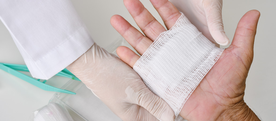 切り傷 / 擦り傷 / 刺し傷・トゲ / 打撲 / やけど / 咬創(動物による咬み傷) / 蜂刺され・虫刺され / 褥瘡(床ずれ)の管理 など